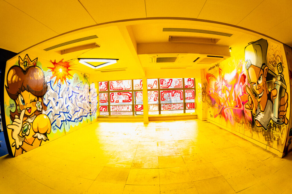 Le lieu est en perpétuelle transformation : œuvres créées en direct, artistes au travail, fresques monumentales, espaces interactifs…