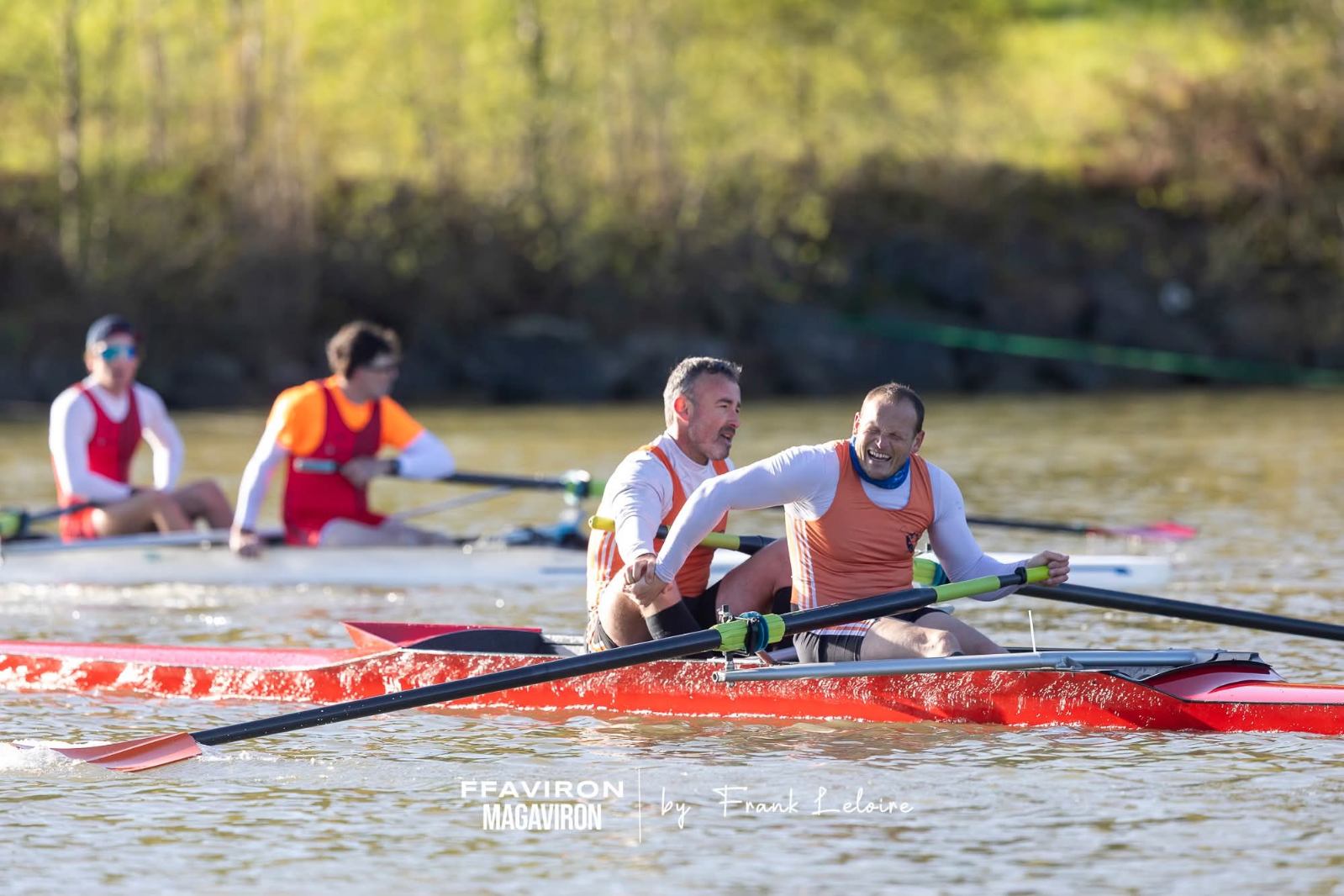 Chez les hommes, Téo Rayet (Mâcon) et Florian Ludwig (Chambéry) ont longtemps creusé l’écart avant de voir revenir Armand Pfister (Chambéry) et Alistair Gicqueau (Tours) dans les derniers mètres. Ils s’imposent finalement avec une marge réduite. La jeune paire Odysseas Tubidis (Boulogne 92) et Louis Descot-Vigouroux (Aviron Toulousain) décroche le bronze.