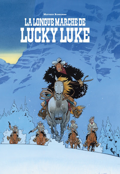 Après L’Homme qui tua Lucky Luke et Wanted Lucky Luke, Matthieu Bonhomme propose une nouvelle interprétation du personnage créé par Morris. S’il truffe son récit de références au western et aux albums classiques de la série – à commencer par Billy the Kid –, il l’ancre aussi dans la réalité contemporaine des États-Unis. Au-delà des clins d’œil au pouvoir de nuisance d’un certain Ronald, Matthieu Bonhomme affirme avec force ses convictions écologistes et son engagement en faveur des Amérindiens. Avec La Longue Marche de Lucky Luke, il signe un western épique au format CinémaScope dans lequel la grande aventure se teinte d’humour et de tendresse. Et la description d’un Lucky Luke démuni face à l’insolence gouailleuse du jeune Nuage Rouge restera comme l’un des grands moments de cette histoire…Aux Éditions Dargaud