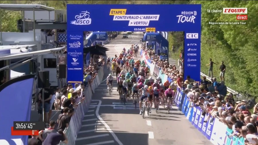 La 1ère étape emmène les 112 coureurs de L’abbaye de Fontevraud (49) à Vertou (44) 187,5 kms ou s’est imposé au sprint Ethan Vernon (NSN).