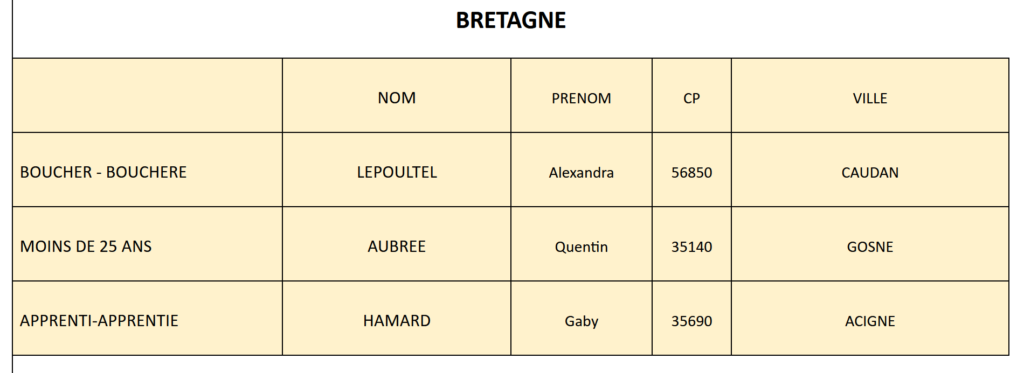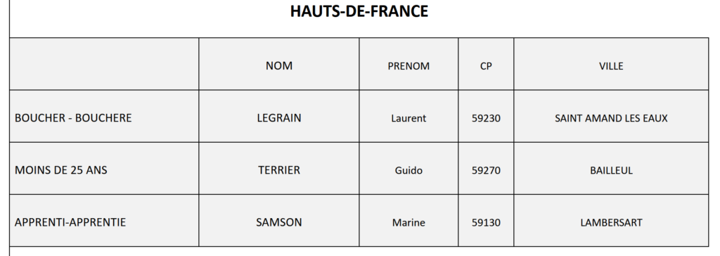 COMPOSITION DES EQUIPES DU CONCOURS DE BOUCHERIE INTER-REGIONS