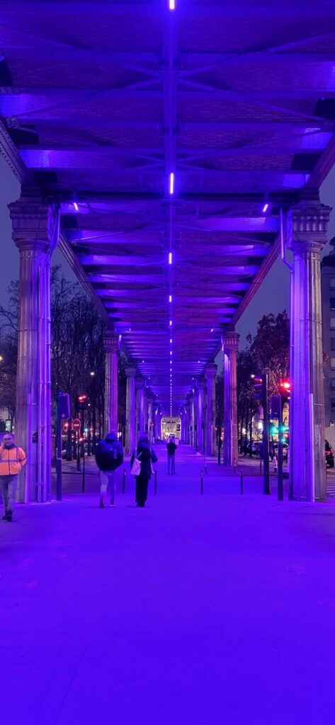 C’est au coeur de ce musée offert à tous que nous allons installer sous le viaduc du métro aérien longeant le boulevard, un chemin pérenne de lumière et de son traversant les œuvres, une Heure Bleue. Synchronisée en temps réel à l’heure bleue du crépuscule, l’installation produira un reflet du ciel sur le boulevard. Les lumières de l’Heure Bleue seront accompagnées d’une création sonore originale immersive et spatialisée, qui se déploiera sur toute la longueur du site. Par sa temporalité unique, sa dimension immersive et sa portée symbolique, cette œuvre sensorielle et exploratoire s’offrira à la sensibilité et à l’imagination du passant.